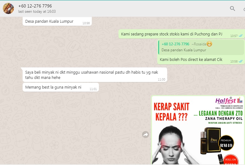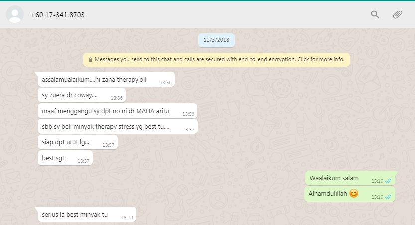 Testimoni Pelanggan Zana Therapy Oil Malaysia