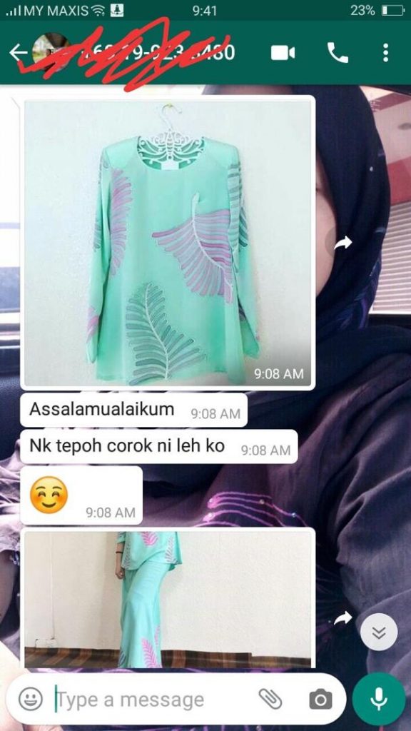 Nik Nock kongsikan juga dengan kawan-kawan media sosial dan nombor untuk dihubungi bagi maklumat lanjut berhubung batik eksklusif Zieyra Design.