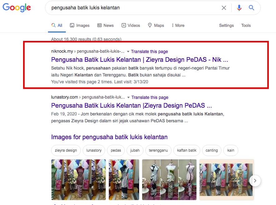 Kebanyakan artikel perniagaan usahawan ini di blog Nik Nock telahpun mendapat tempat di halaman pertama di dalam Carian Google.